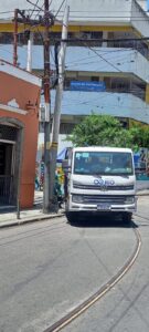 Realmente é complicada a situação da Águas do Rio no bairro. Quando não é falta d’água é o transporte que é afetado pela inoperância e da empresa nos serviços mais elementares, como trânsito de seus caminhões. Em virtude de um erro do condutor ao fazer a curva nas esquinas da Rua Áurea e Monte Alegre, entre o Posto de Saúde e o bar do Gomes, o caminhão da empresa quase arrancou o poste ao lado do Esquina de Santa, suspendendo o tráfego de bondes no ramal Paula Mattos.